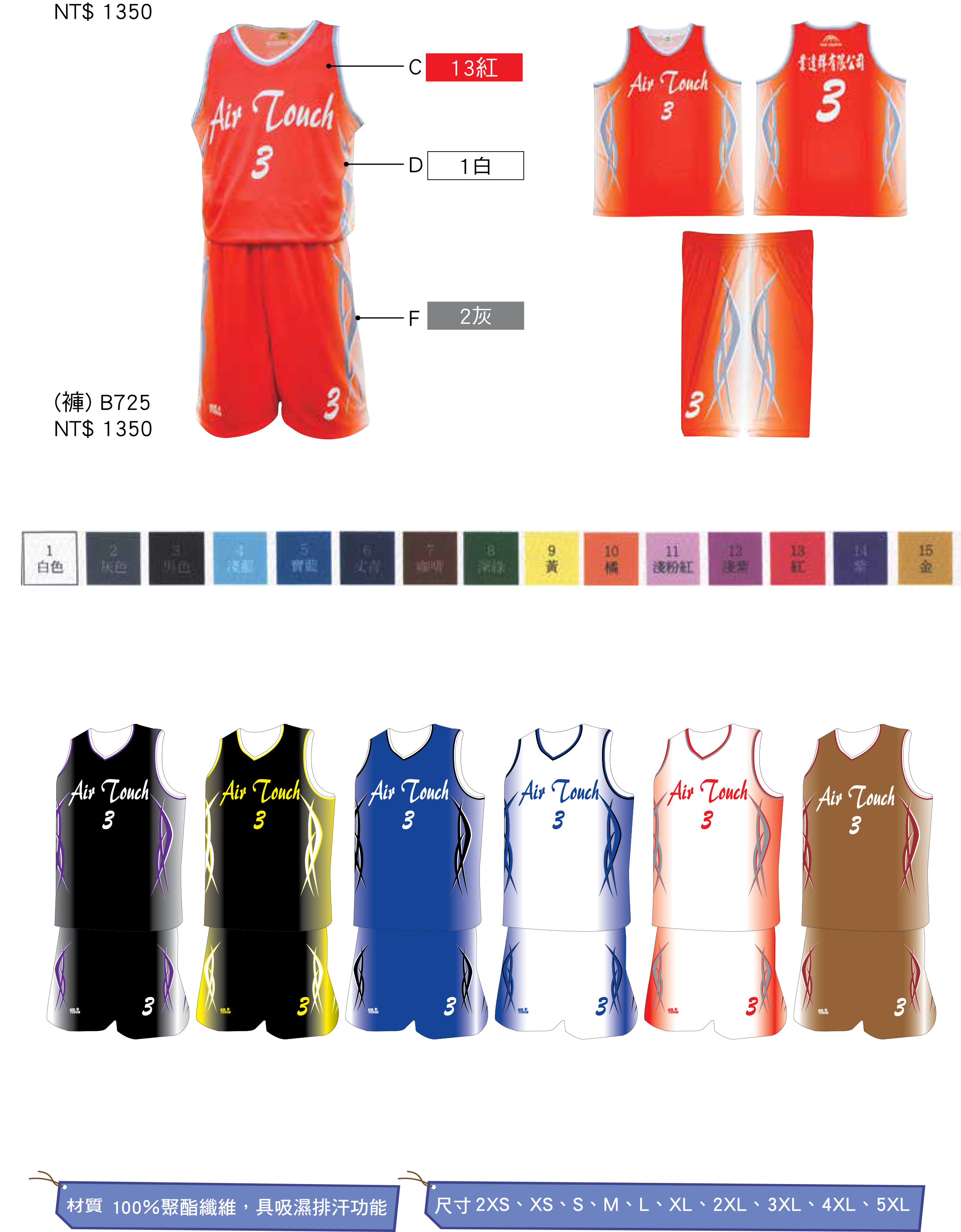 ♦品名: Air Touch 725 (熱昇華單面穿球衣)