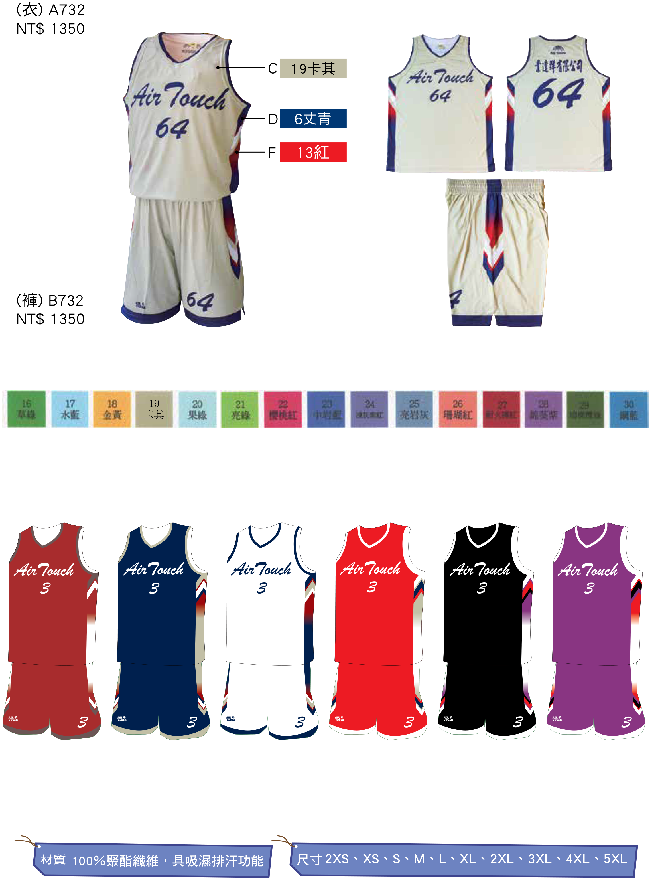 ♦品名: Air Touch 732 (熱昇華單面穿球衣)
