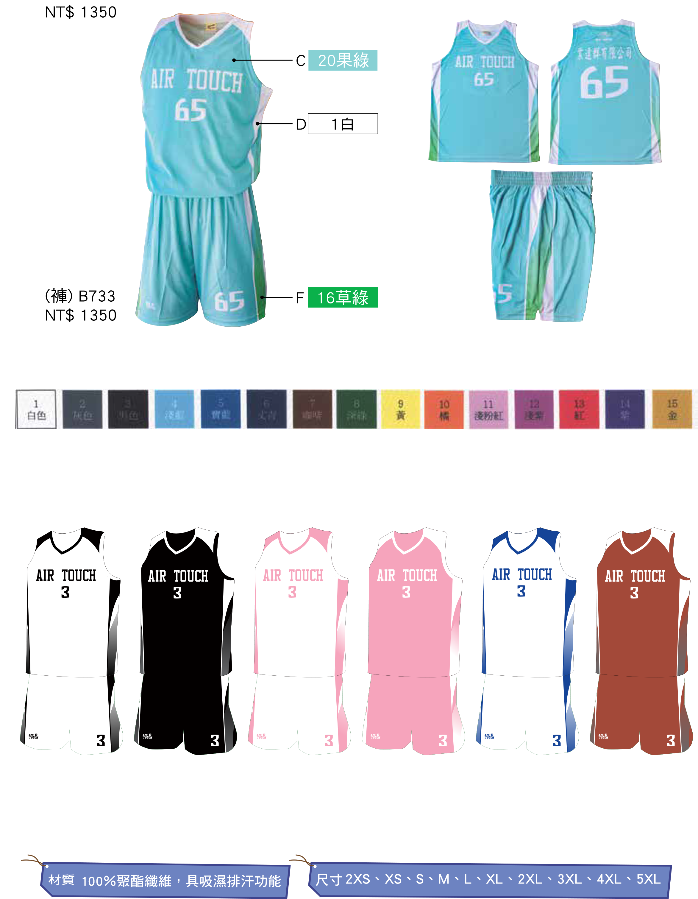 ♦品名: Air Touch 733 (熱昇華單面穿球衣)