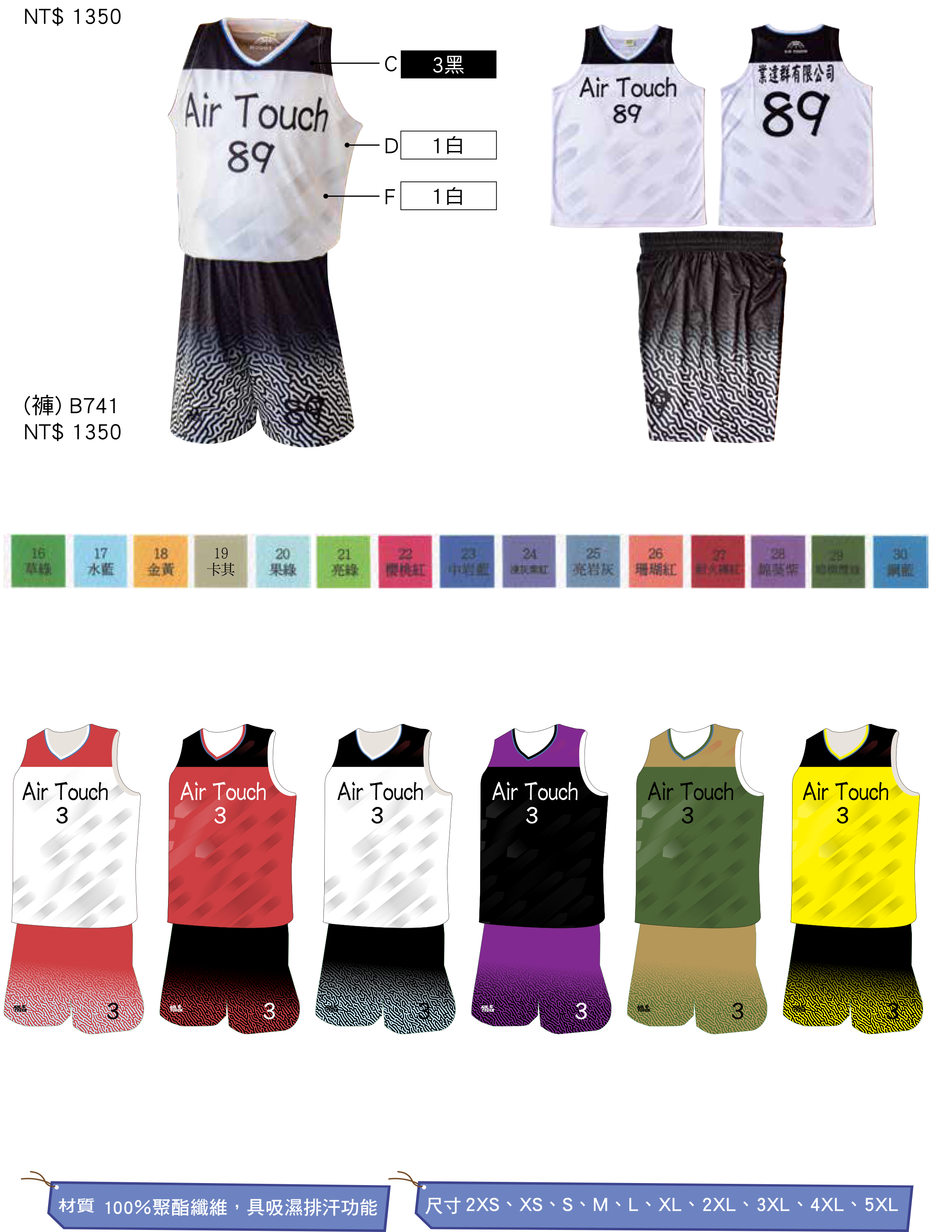 ♦品名: Air Touch 741 (熱昇華單面穿球衣)