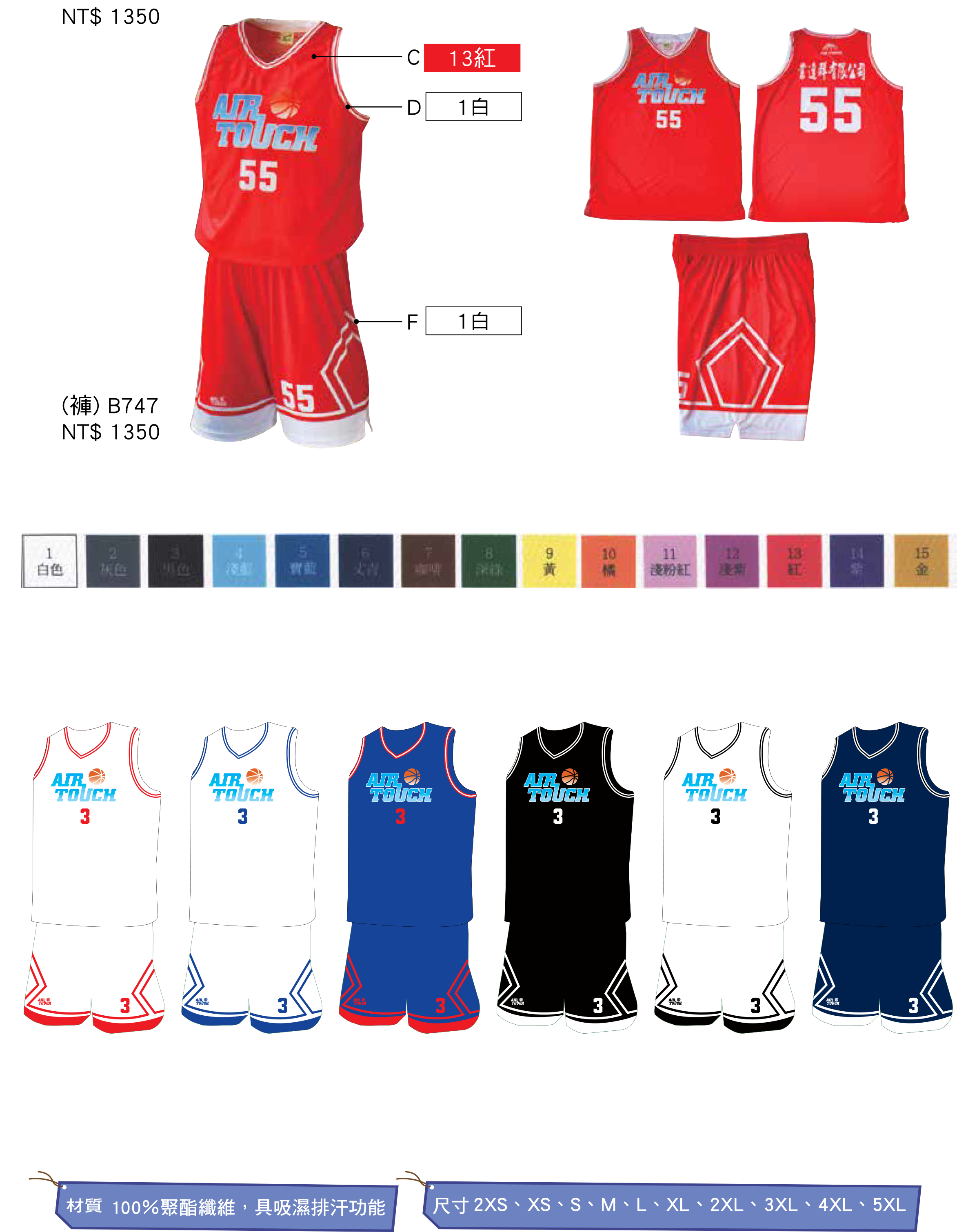 ♦品名: Air Touch 747 (熱昇華單面穿球衣)