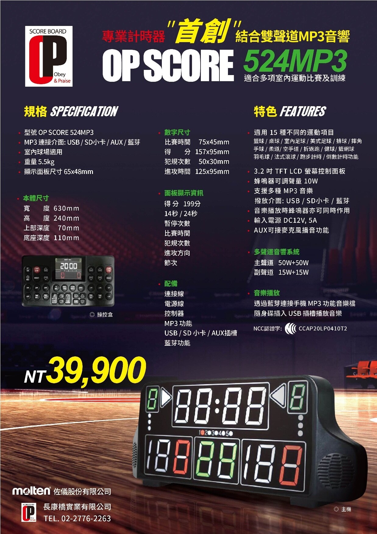 OP SCORE 524MP3 多功能計時器(請來電詢價)